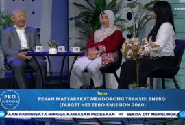 Yogyakarta, PSE UGM- Pro Justicia merupakan acara yang membahas seputar hukum di Indonesia. Tepatnya pada Selasa 11 November 2025, Pro Justicia mengundang 2 Pakar PSE UGM antara lain Prof. Ir. Tumiran M.Eng., Ph.D. dan Prof. Dr. Mailinda Eka Yuniza S.H., L.L.M. yang akan membagikan pemikirannya terkait “Peran Strategis Masyarakat Sebagai Agen Perubahan dalam Mendorong Transisi Energi yang Adaptif dan Kolaboratif Menuju Target Net -Zero Emission (NZE) 2026”. Dalam diskusi ini mereka menegaskan bahwa kesuksesan transisi energi harus didukung oleh pemerintah ( dengan pembuatan kebijakan dan sebagainya) dan juga masyarakat. Selain itu Prof. Tumiran juga menegaskan bahwa kesuksesan transisi energi dimulai dari kebiasaan masyarakat seperti penggunaan kendaraan bebas emisi (sepeda, becak, dan sebagainya) dan penggunaan peralatan rumah tangga yang lebih beremisi rendah seperti penggunaan kompor listrik dibandingkan kompor gas. Diharapkan diskusi dan sumbangsih ini dapat menggerakkan masyarakat untuk lebih bertransisi menuju clean energy.
